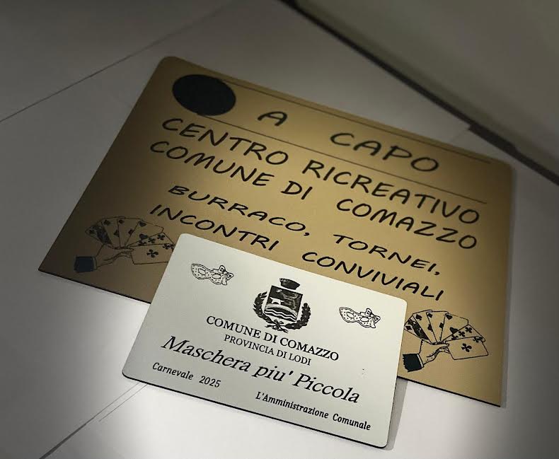 Targhe in Acciaio, Vetro, Trafolite, Ottone, Metalli cromati e Nichelati, Plexiglass, Cuoio e Legno.